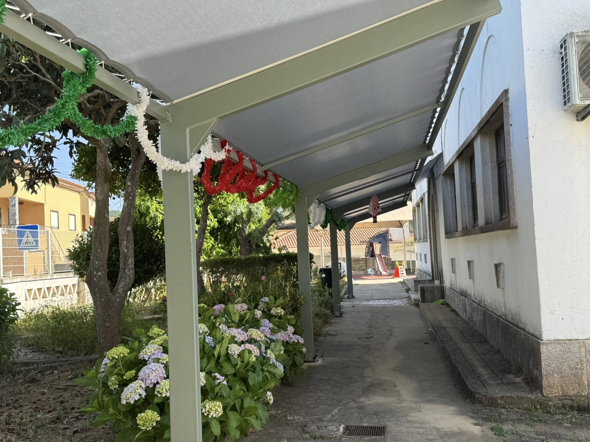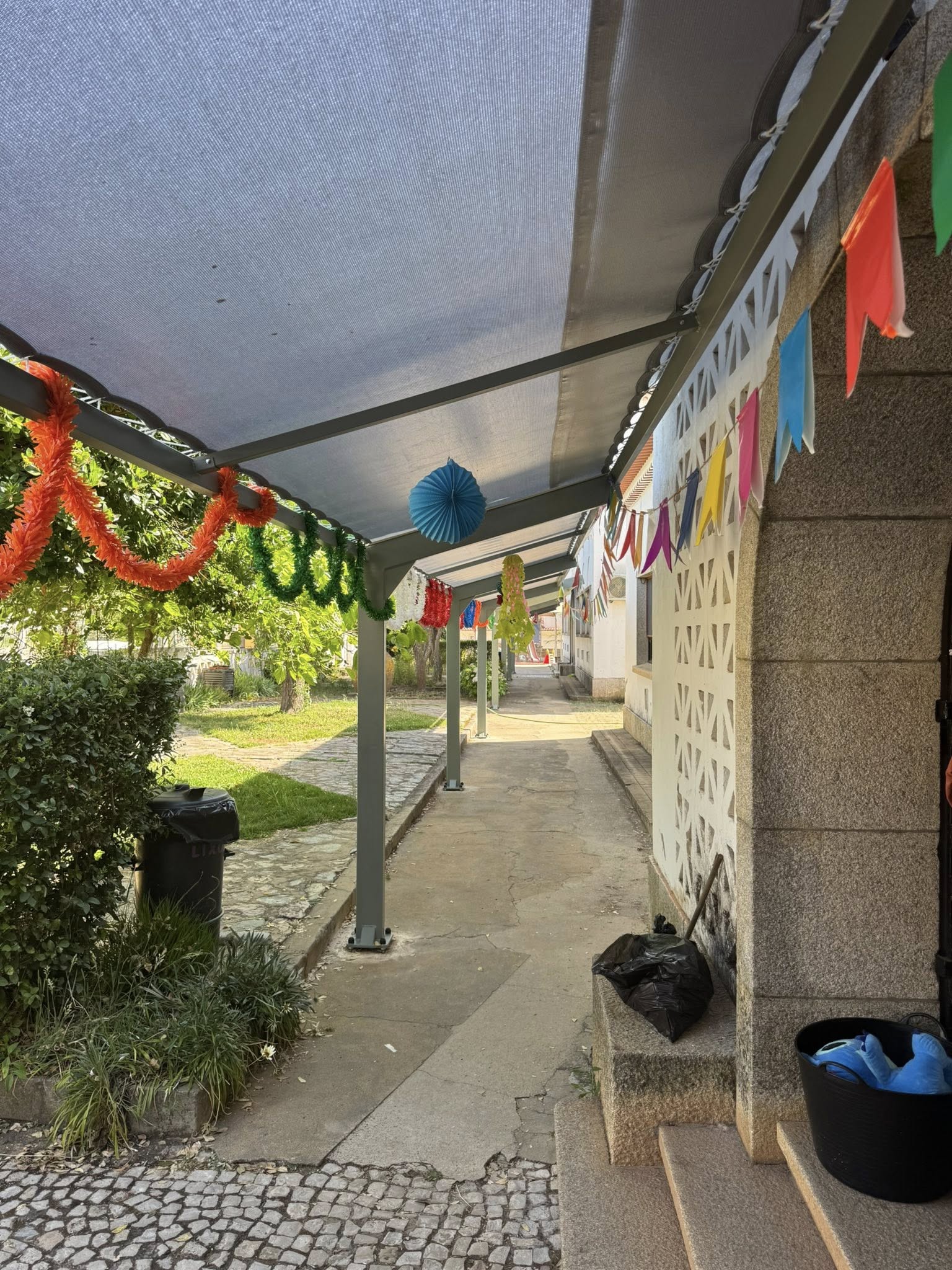 Finalmente conseguimos realizar um desejo já muito antigo! A execução da cobertura entre a escola do JI e o refeitório.